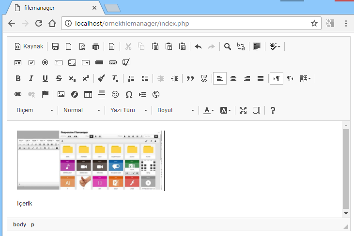 Demo uygulaması için: Demo Responsive FileManager